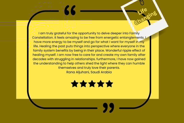 Despite being qualified in other types of therapy such as NLP, being a life coach, and having a wellbeing YouTube channel, money wasn't coming in, and I was an emotional mess. That's when a friend asked if I knew about Family Constellations. "Vaguely," I replied. It sounded "weird," and I didn't pay attention to it.