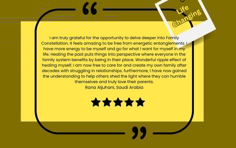 Despite being qualified in other types of therapy such as NLP, being a life coach, and having a wellbeing YouTube channel, money wasn't coming in, and I was an emotional mess. That's when a friend asked if I knew about Family Constellations. "Vaguely," I replied. It sounded "weird," and I didn't pay attention to it.